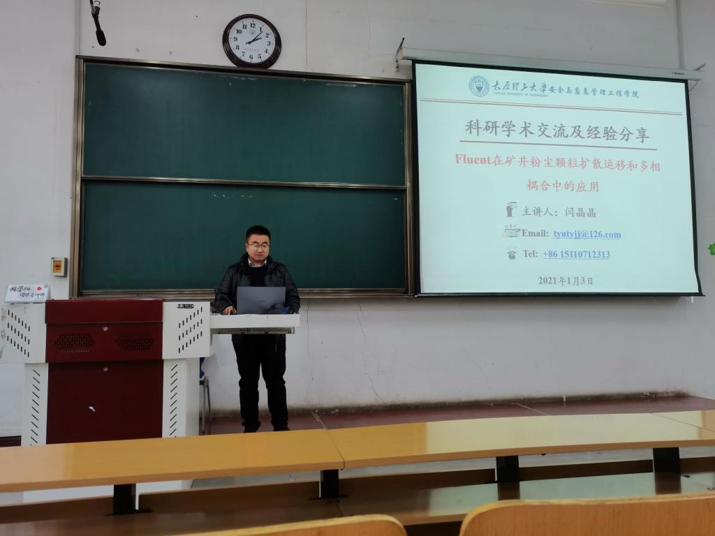 2021年1月3日下午14:00,永利yl23411集团在明向校区行知楼B119举办了第三届研究生安全学术交流会。本次交流会由我院刘红威老师主持,安全科学与工程专业博士研究生闫晶晶作学术报告。会议邀请了高亚斌老师作为点评专家。全院200多名研究生参加了此次学术交流会。