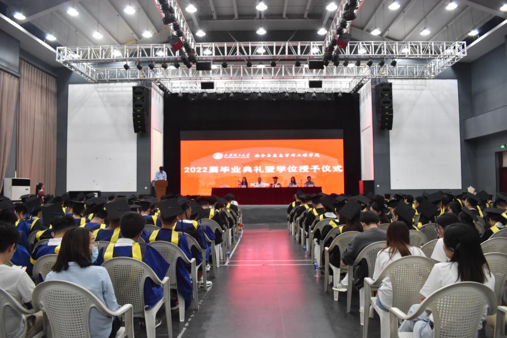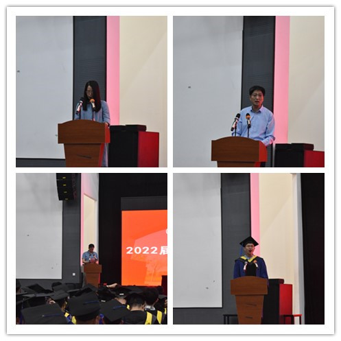 典礼在2022届毕业季MV和嘹亮的国歌声中拉开帷幕。邓存宝院长给全体毕业生送上祝福与殷切期盼,他希望同学们坚定理想、开拓创新、学会感恩、终身学习。教师代表赵耀江教授给毕业生送出了美好寄语,并告诉同学们努力奋斗之时,也不要忘记常回家看看。学生代表胡斐同学对母校的栽培,老师的辛勤付出,以及身边每一位同学的陪伴表达了最真诚的感谢。