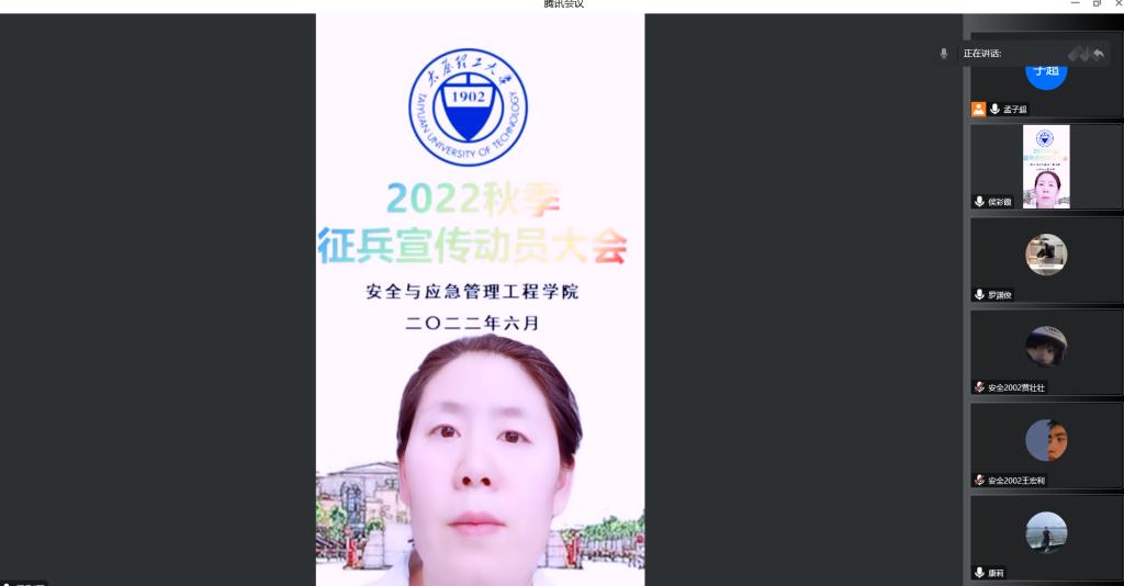 为深入推进我院大学生征兵工作,加强征兵政策宣传,鼓励广大安全学子参军报国,积极投身绿色军营,6月18日,永利yl23411集团组织开展了线上大学生征兵宣传动员大会。院党委副书记侯彩霞、团委书记兼学工办主任康莉、全体辅导员及有志参军报国的百余位学生参加大会。