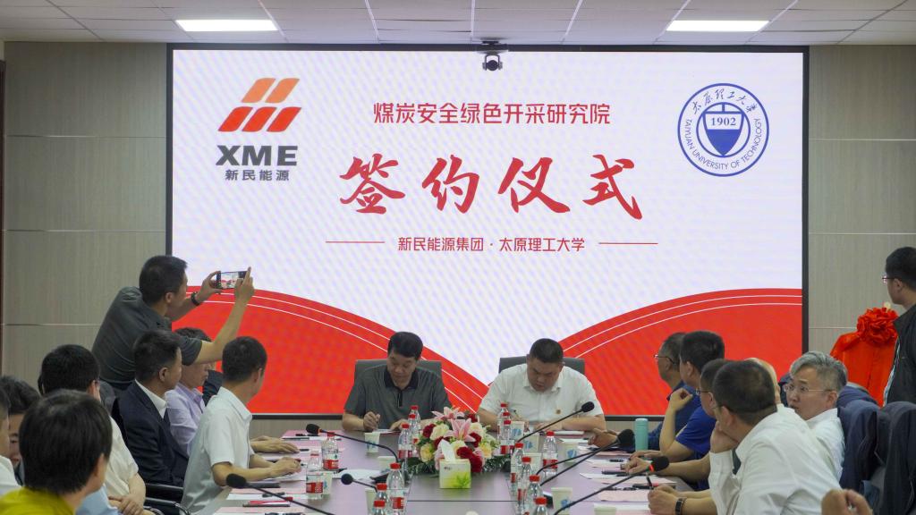 吴斗庆、李建分别代表校企双方共同签署了山西新民能源投资集团与yl23411永利网页版共建合作协议,并为研究院揭牌。