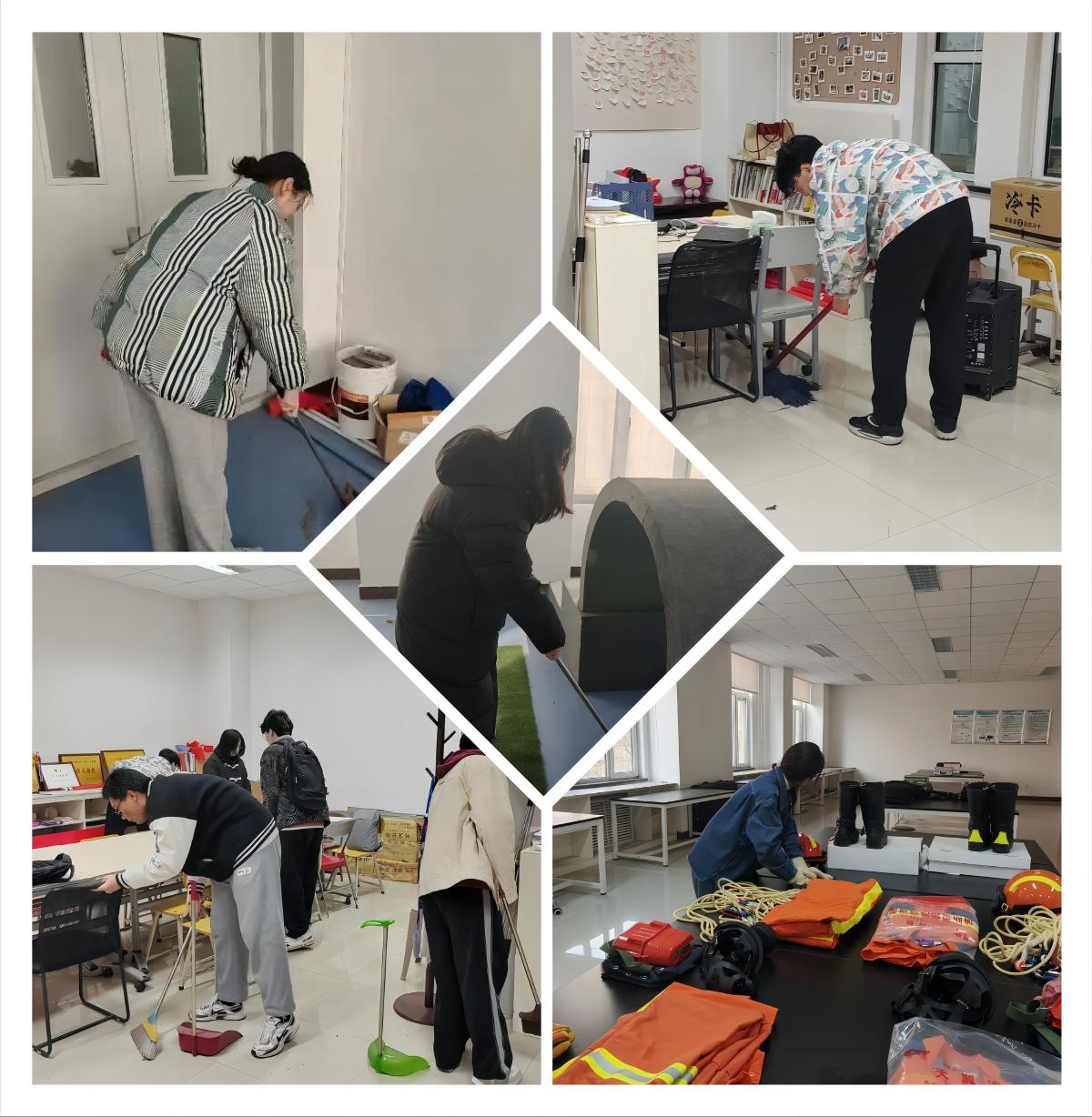安全本科党支部、安全研究生第三党支部、团学组织的同学们也化身志愿者对学院楼进行大扫除,同学们认真清扫、拖洗各个办公室、实验室、会议室、报告厅和楼梯走廊,仔细清理黑板,有条不紊地摆放各种设施与服装,在营造干静整洁的学院环境的同时,也是用实际行动践行着雷锋精神,真正做到将雷锋精神内化于心外化于行。