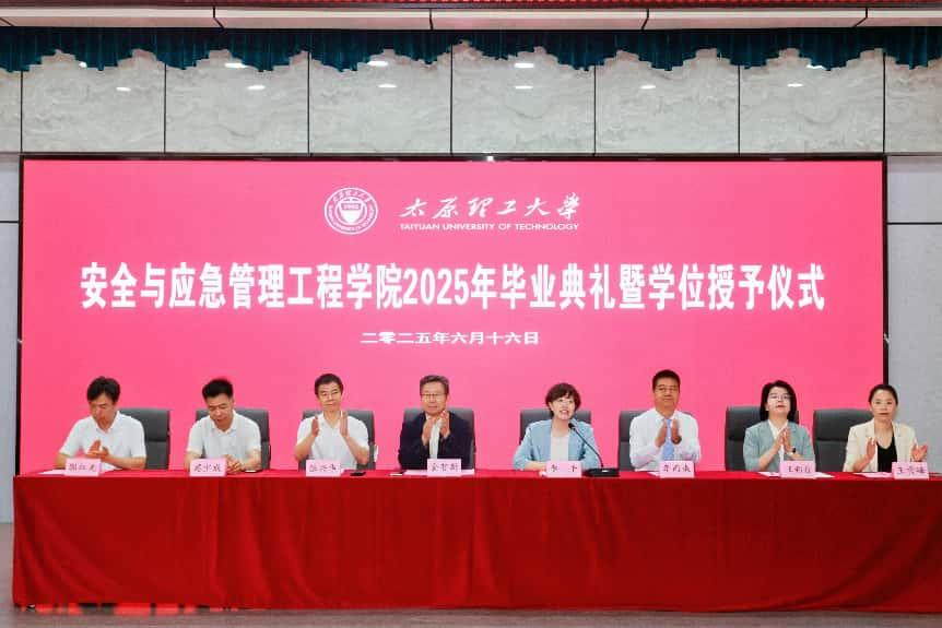 教师代表安全系主任唐一博以三张“山西名片”为喻,深情寄语全体毕业生。他勉励同学们,如老陈醋般沉淀,将知识投入实践熔炉,在攻坚克难中“发酵”出醇厚经验;如矿灯般清醒坚韧,在风险角落保持警觉,做黑暗中照亮生命通道的掌灯者;如应县木塔般敬畏严谨,以扎实功底筑牢安全防线。最后,他代表全体教师,祝愿全体毕业生前程似锦、再创辉煌。
