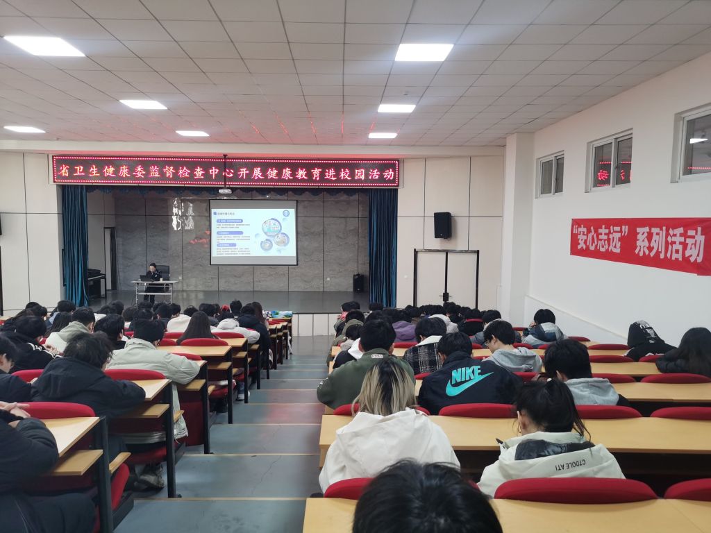 为深化校园安全教育,提升学生健康安全素养,培养文明健康的生活方式与行为习惯,促进身心健康全面发展,2月28日,安全学院开展“安心志远”系列活动之健康教育进校园主题活动,特邀省卫生健康委监督检查中心专家来院进行健康知识讲座。