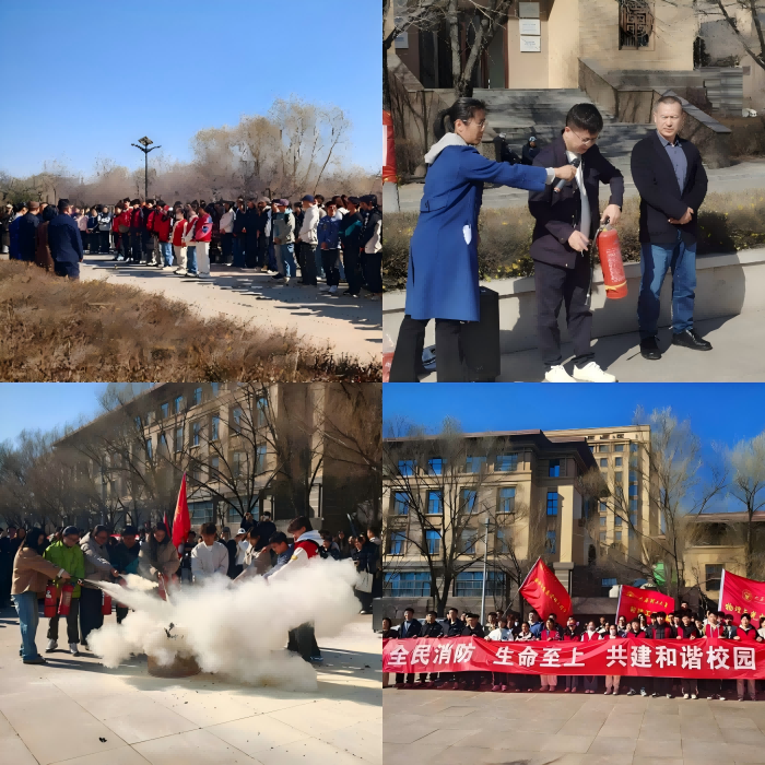 随后,王元对师生进行了灭火器实操培训。通过“提、拔、握、压”四步口诀,生动讲解了灭火器的使用原理及操作规范。为确保每位师生都能熟练掌握这一技能,安全保卫部工作人员模拟火灾场景,点燃火盆,现场组织大家亲自操作灭火器,扑灭火源。