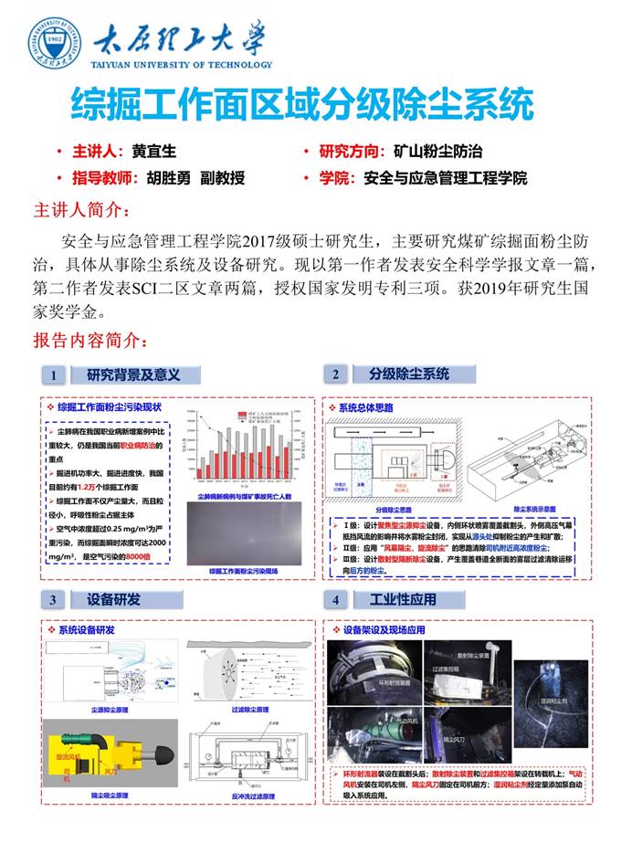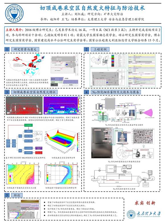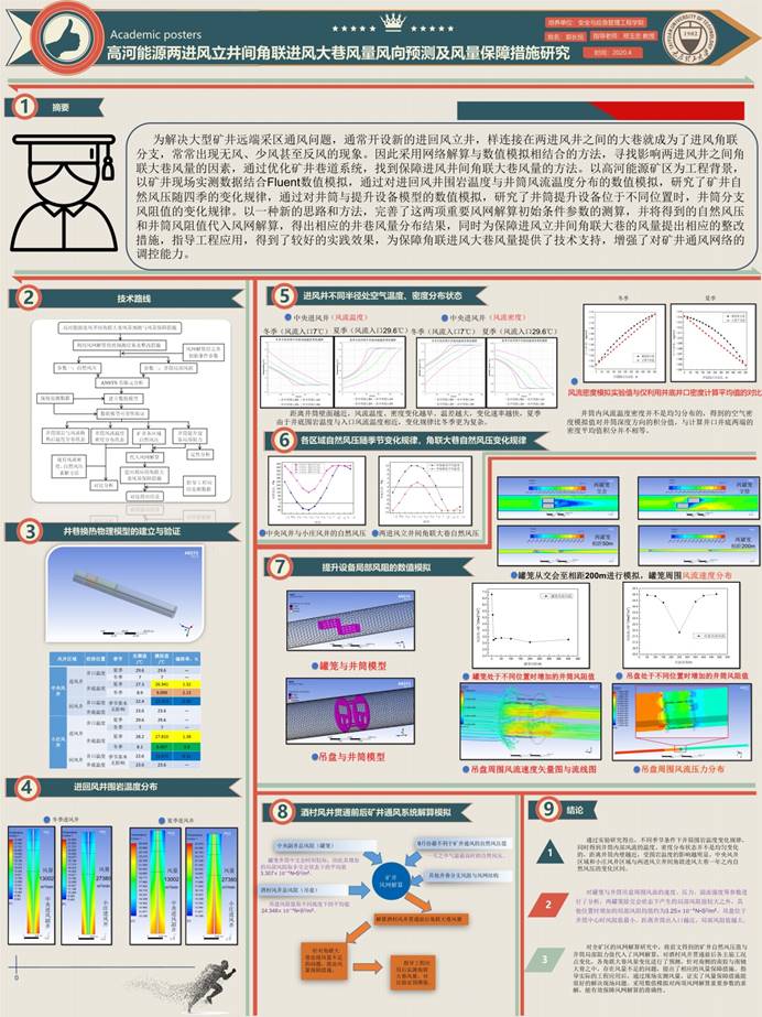 活动收集了来自硕士、博士毕业生的36份设计海报,涵盖矿井灾害防治、煤层改性增透、煤层气增产等方向和内容。临近毕业的研究生们凝聚匠心精神,结合自身研究方向,采用简洁大方、图文并茂的学术海报,展现各自学术风采,给学院、导师上交一份满意的答卷;他们严谨做学问、实践出成果的学术氛围,也给学弟学妹树立了良好的榜样,鼓励大家潜心创作、刻苦钻研!