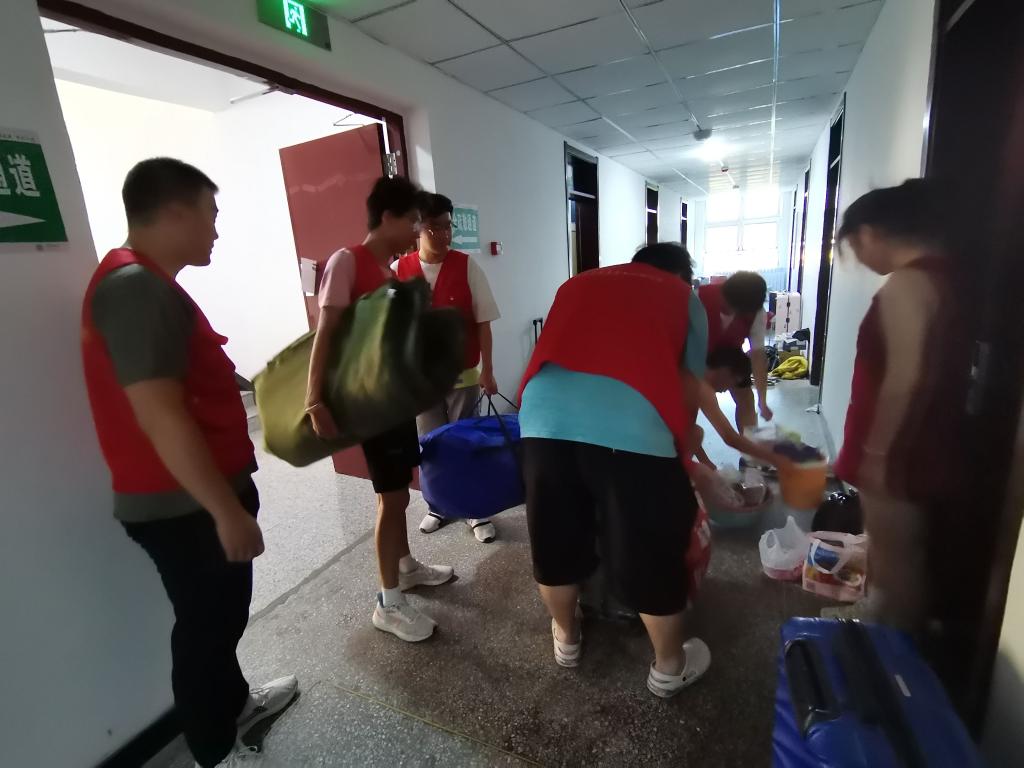 学生党员、志愿者在党支部书记康莉老师和党支部副书记罗渊俊老师的带领下穿梭在各个公寓楼中,维持搬迁秩序,帮助搬迁行李,竭尽全力帮助同学们解决各类问题,打通“宿舍搬迁的最后一段路”。他们头顶烈日、肩扛行李,忙碌的身影形成一道靓丽的风景线。